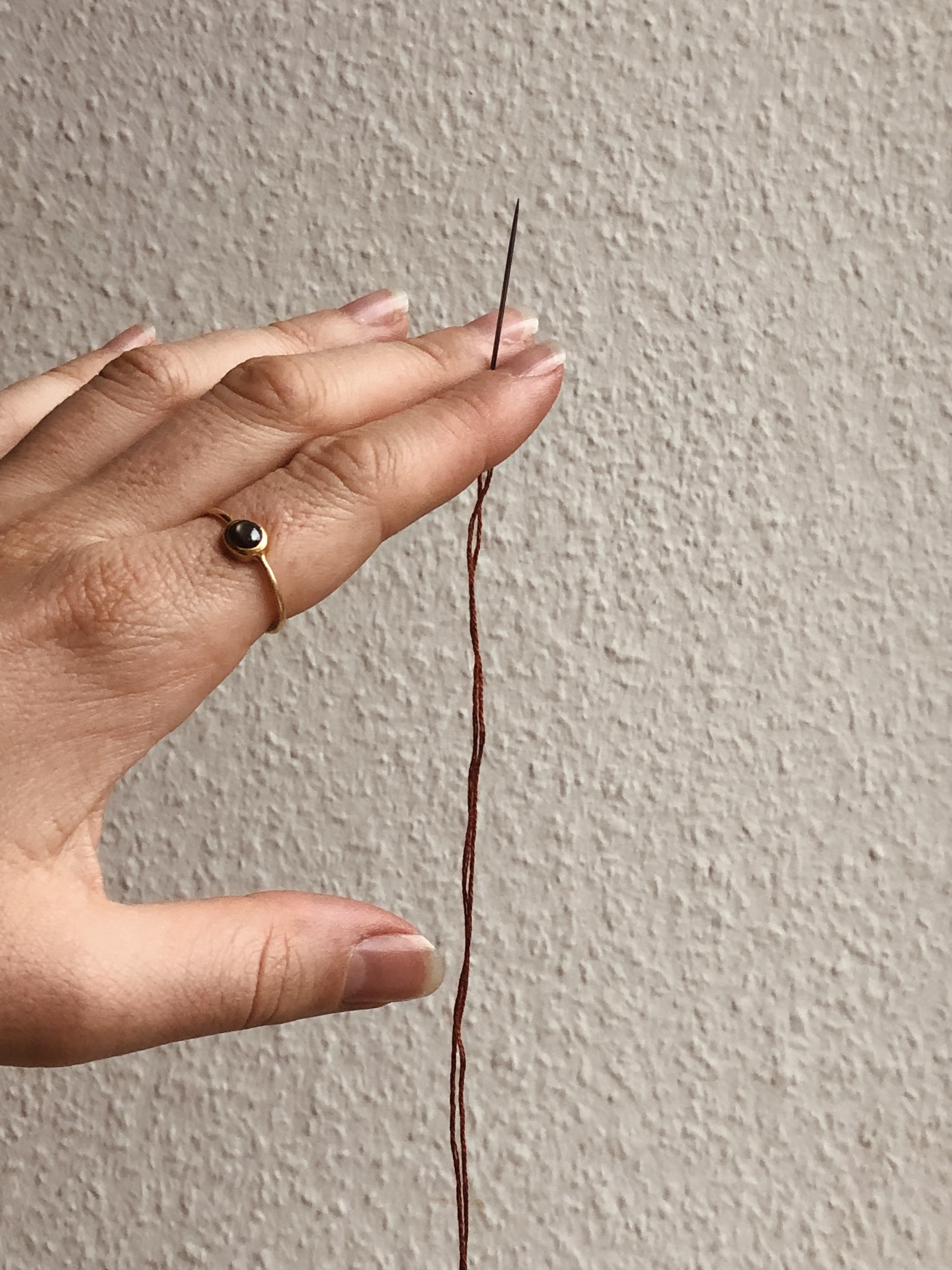 How do you show what you are doing? If you where sitting next to me I would just do it a few times in front of your eyes and talk you through the stitches. Then we would still sit next to each other and every time you might ask “And where now?” I’ll say “There and then there.” And in five minutes it would be clear.