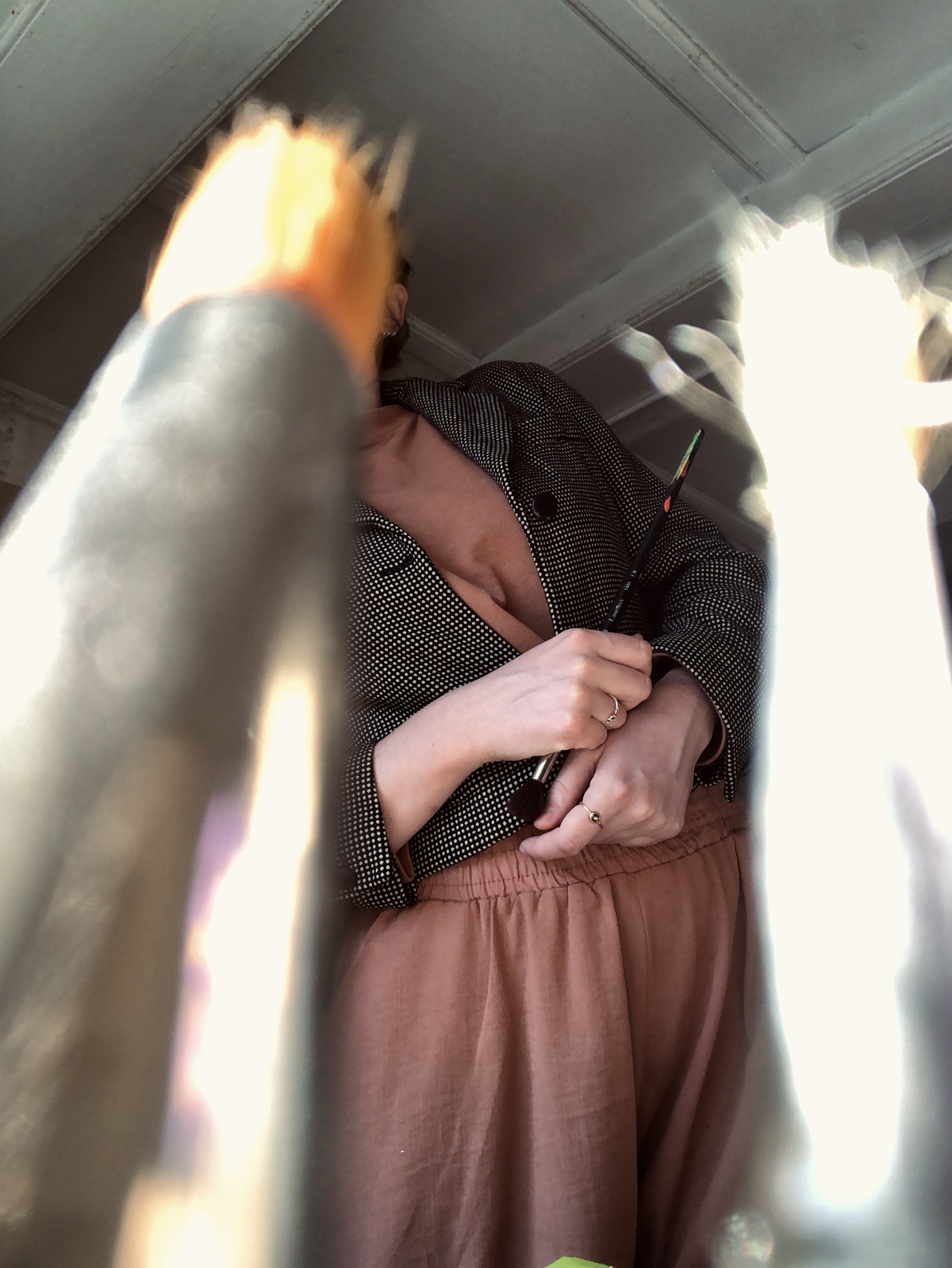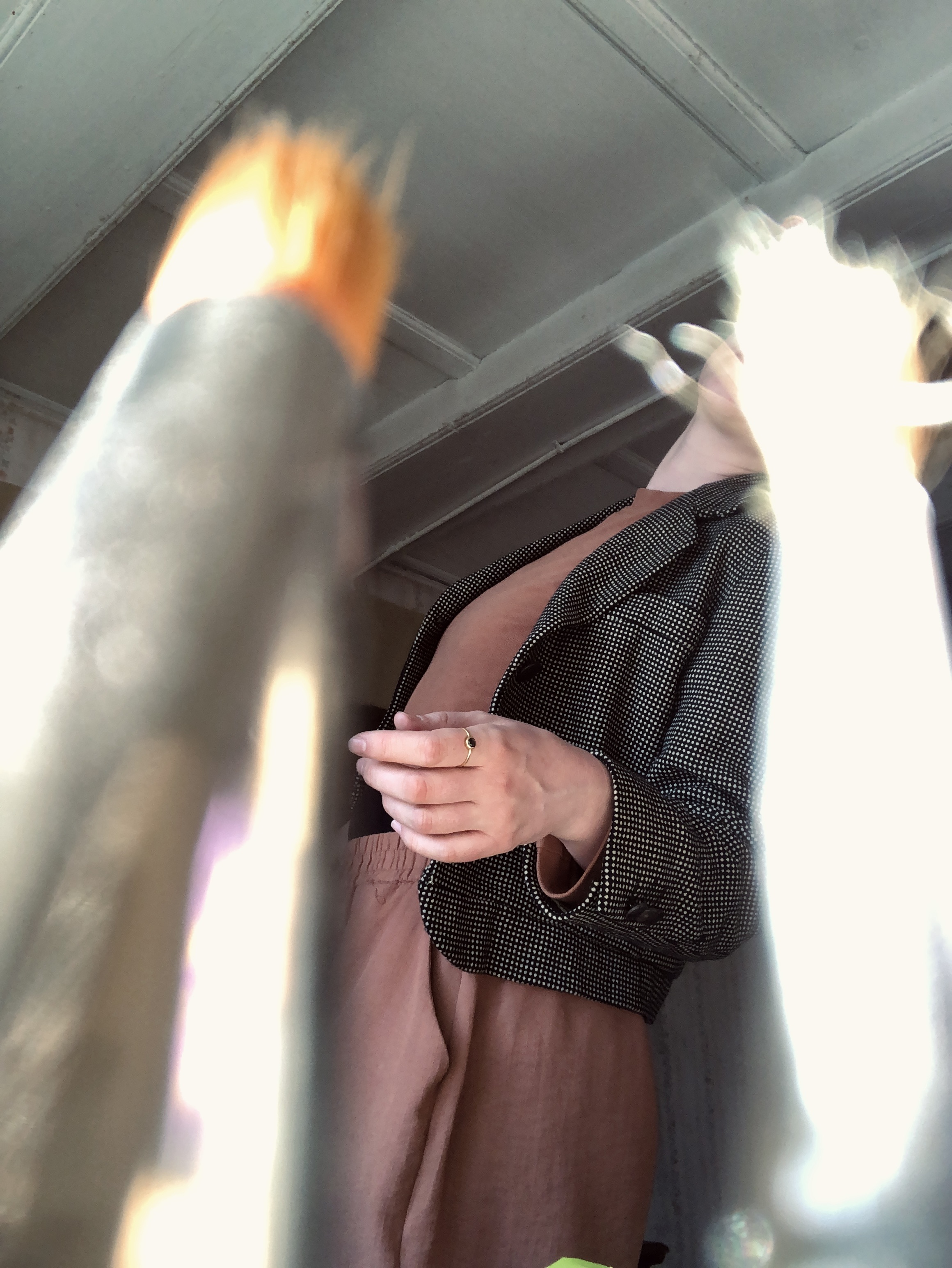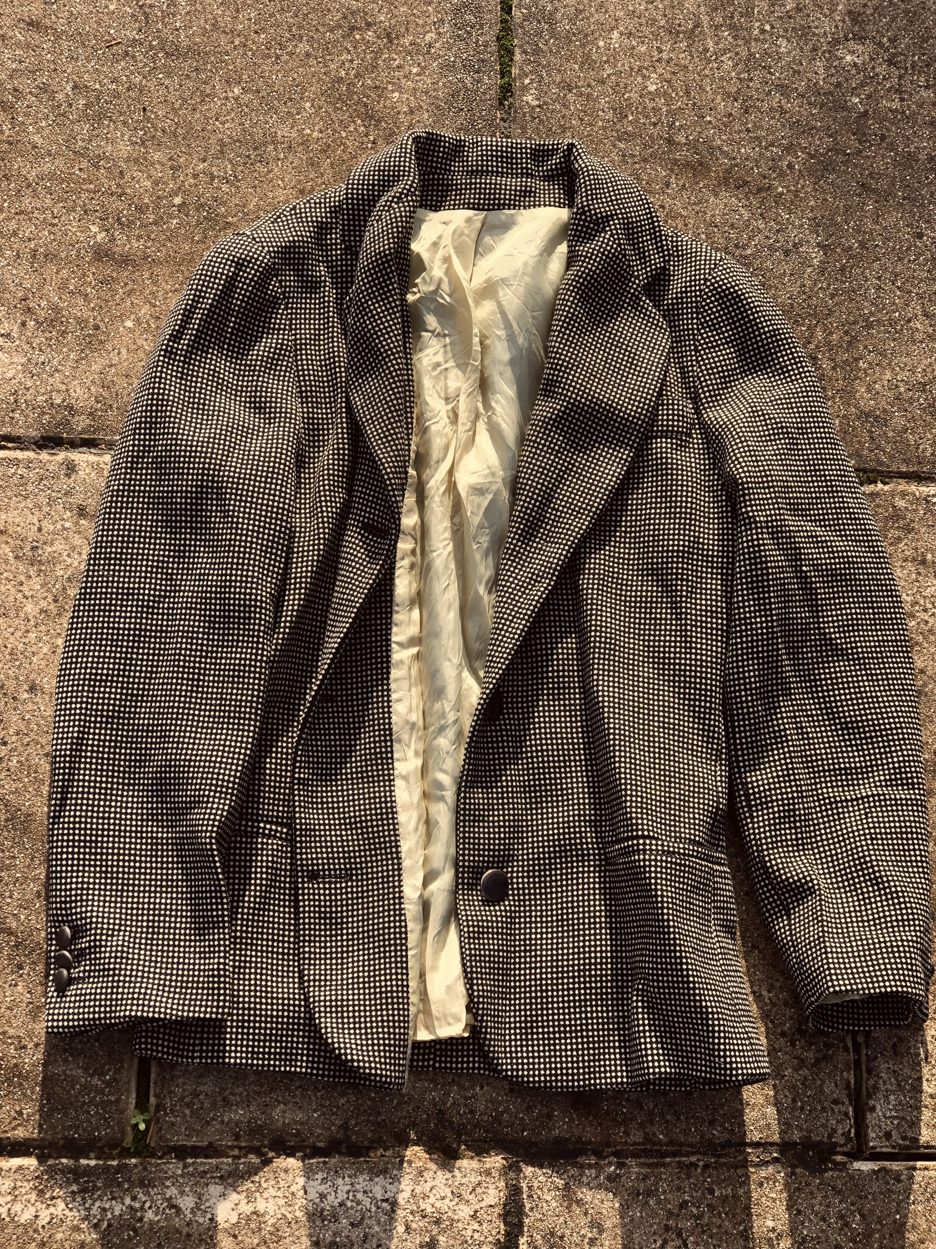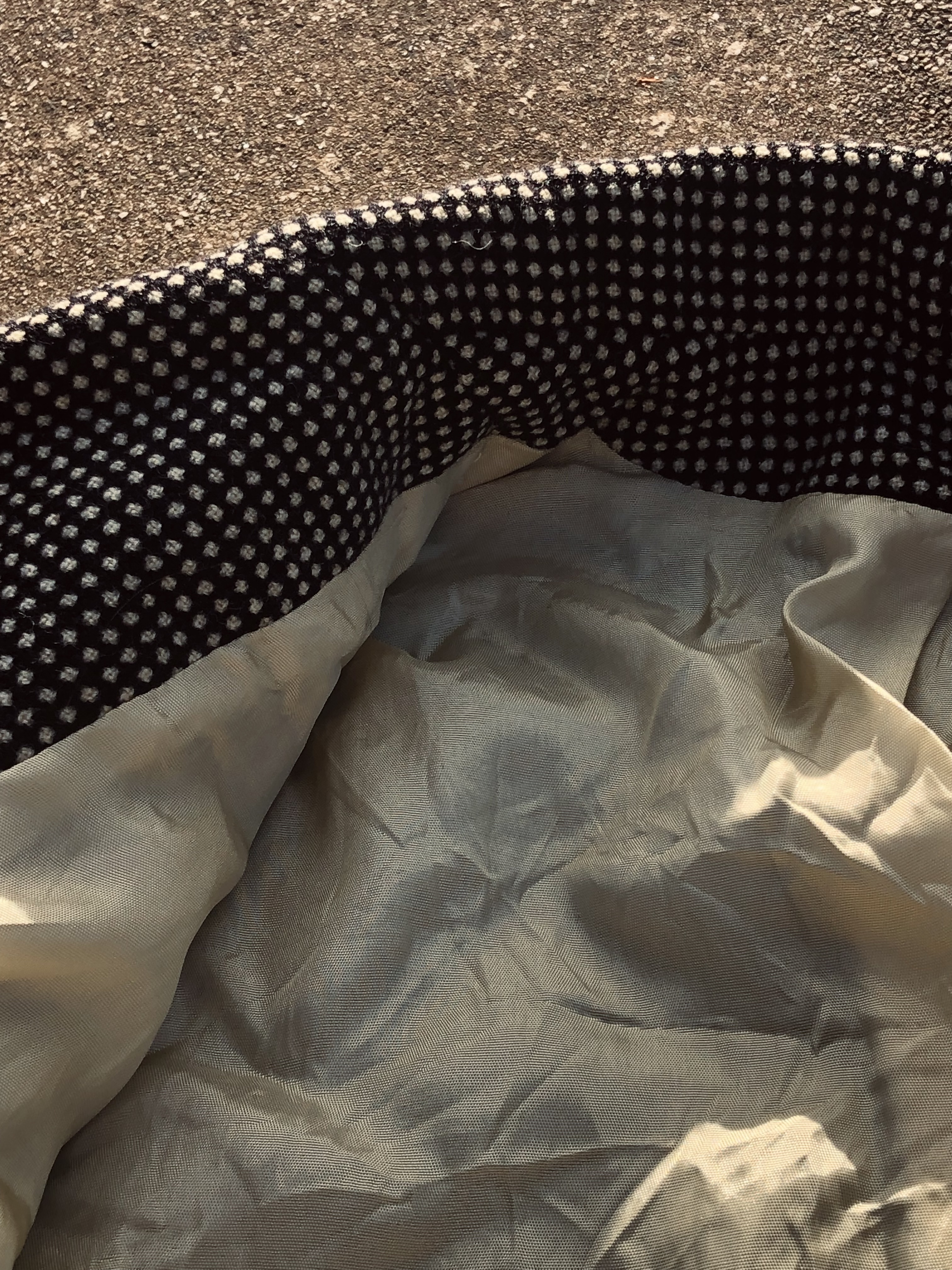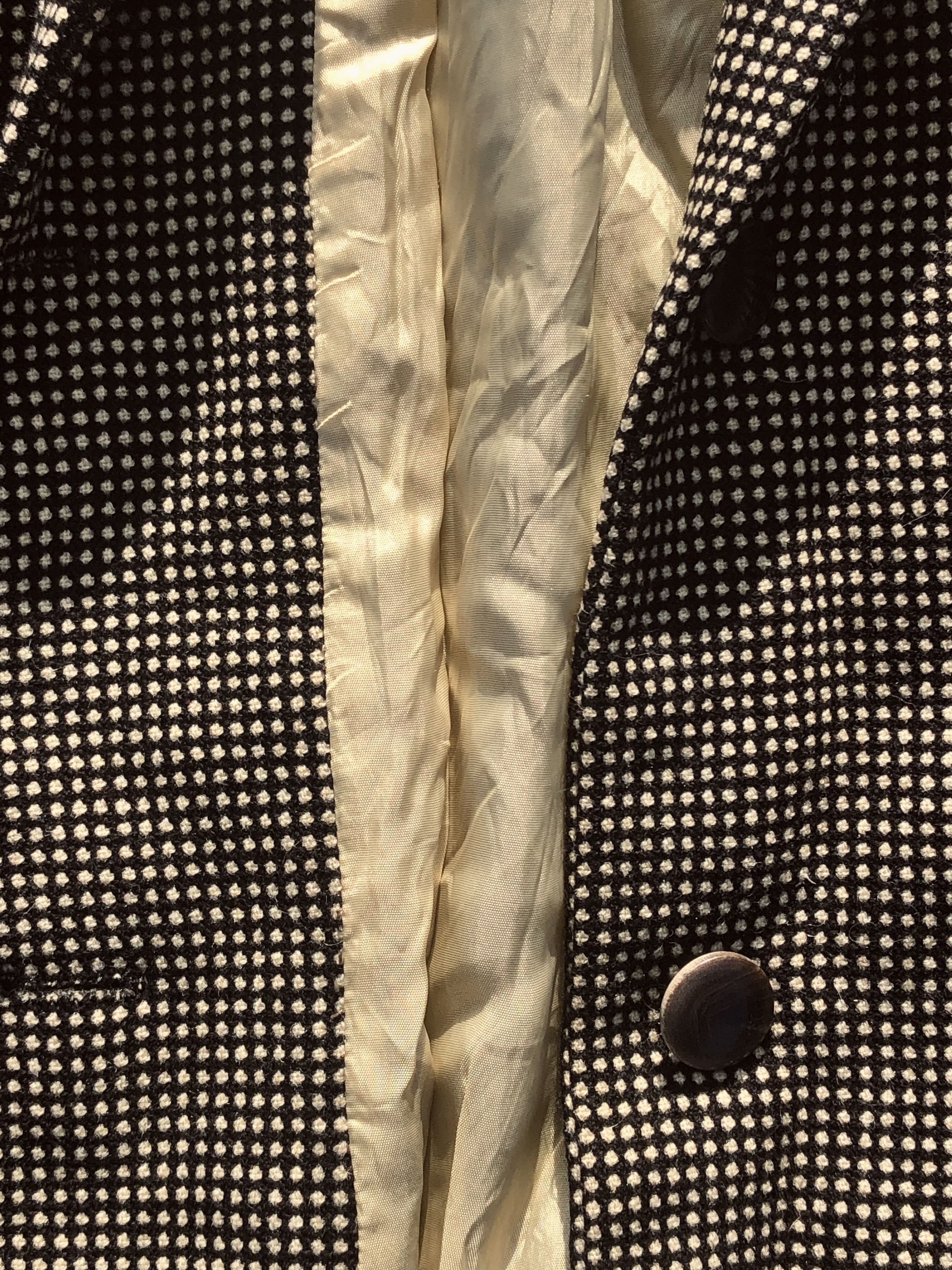 Made by hand, no tags. I imagine the tailor who must have made it a few decades ago, measuring it to the size of the woman who wore it out and about.