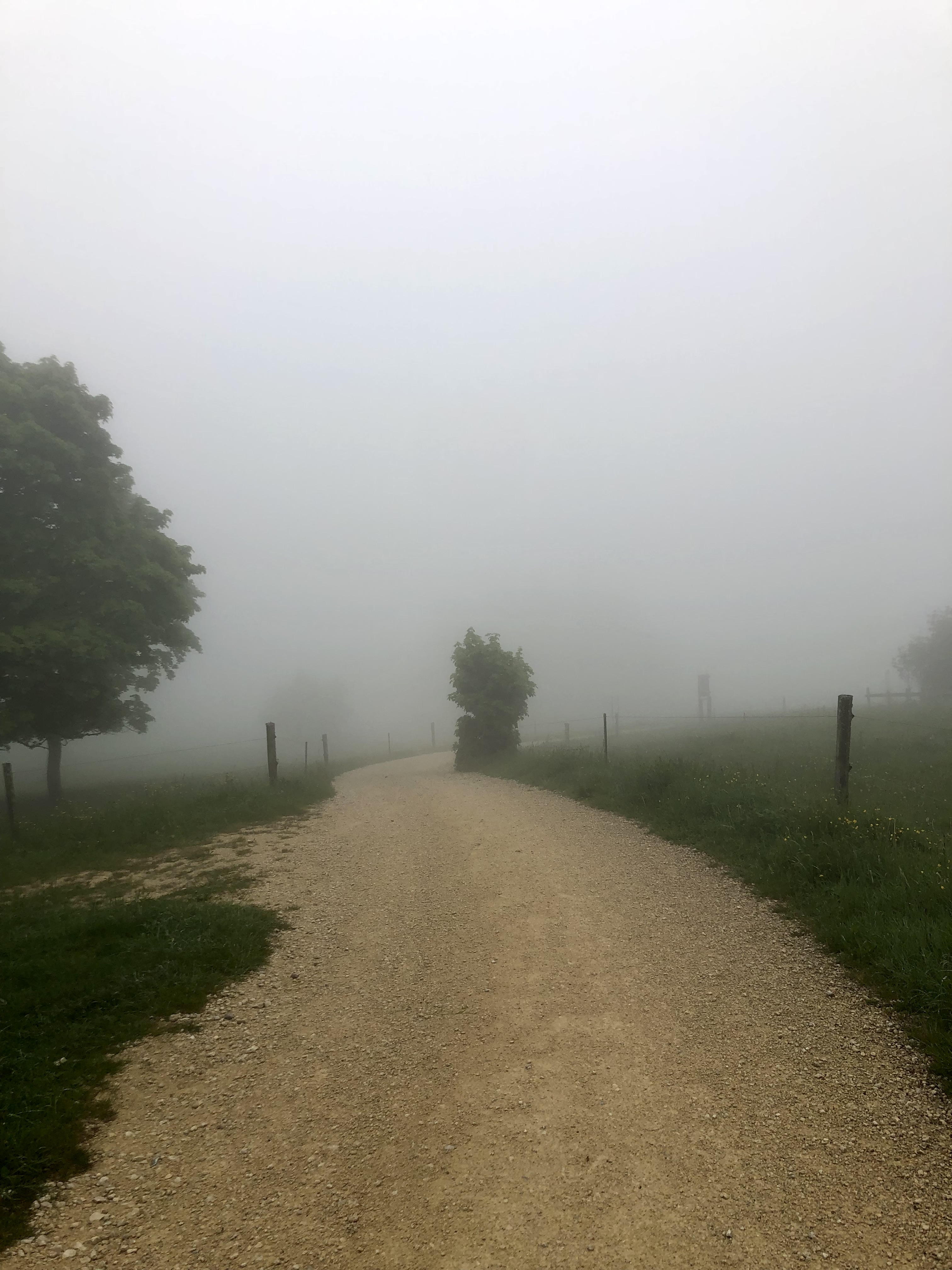 I arrive, drenched in my own sweat on a foggy mountain top, now view, no wind and no bench to sit on. I take it as it is. For the missing wind I am willing to take all the other inconviniences. My eyes fill up with tears again. How beautiful it is to be here?