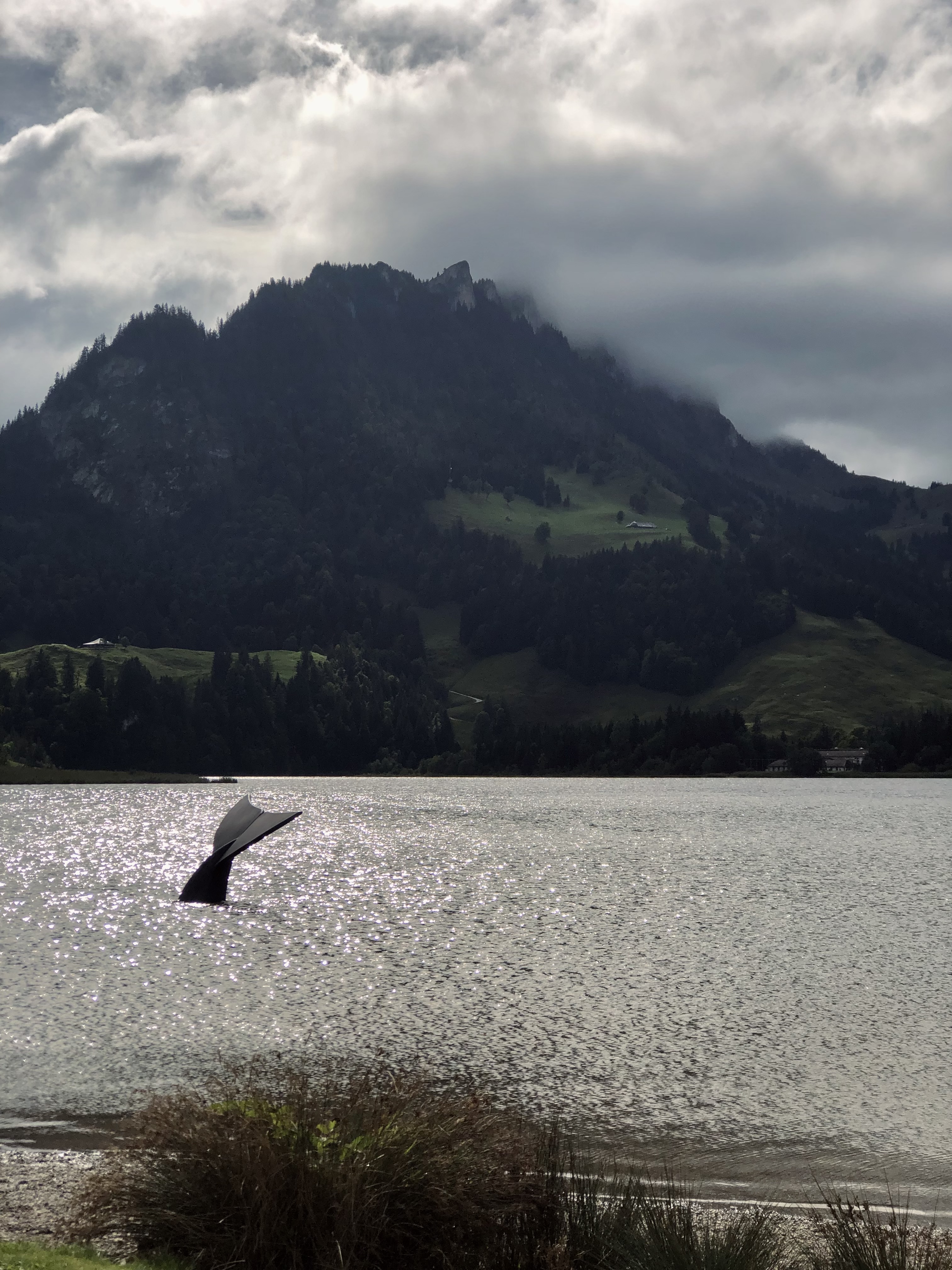 Every one looks at me as I swim in the lake surrounded by snowy peaks. The kids want to get in too. But the adults tell them: “Elle est grande, elle peut faire ce qu’elle veux. Toi tu remet tes chaussures.” The girl says: “Mais moi je suis grande aussi!” I smile at her with approval I don’t dare to interfere. She’s right, I hope she’ll remember when she’s older.
